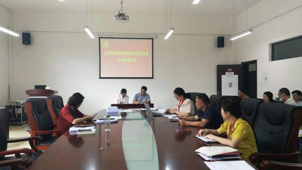 会上,举行了法学院意识形态责任承诺书签订仪式,领导干部代表詹伟、专任教师代表陆敏、管理岗教师代表李玉兰分别在仪式上签订了意识形态责任承诺书。