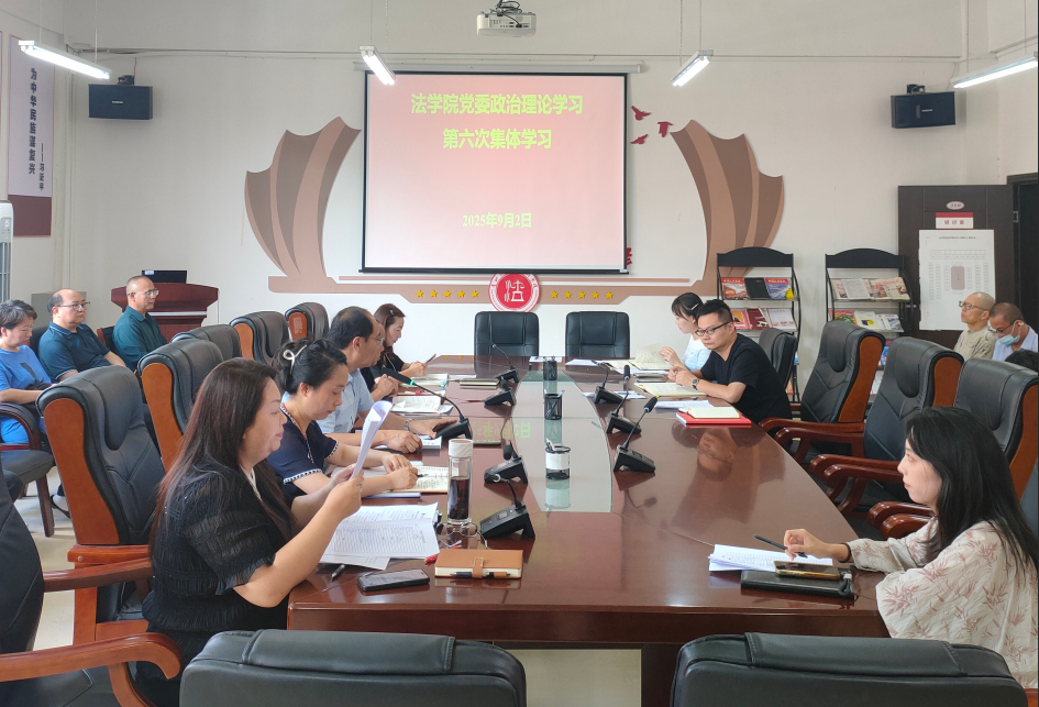 (法学院 潘吉脉 报道|摄影 )9月2日下午,法学院教职工政治理论学习2025年第六次集体学习(扩大)研讨会在西区文德楼310会议室召开。会议围绕“深入学习领会火狐电竞(中国)官方网站总书记近期重要讲话精神,以彻底的自我革命精神将作风建设持续引向深入,坚持不懈把新时代党的自我革命要求落实到位,为谱写新时代贵财新篇章提供坚强保障”进行集中学习研讨。院党委书记邵新顺主持会议并讲话,全体院领导出席会议,全院教职工参会。