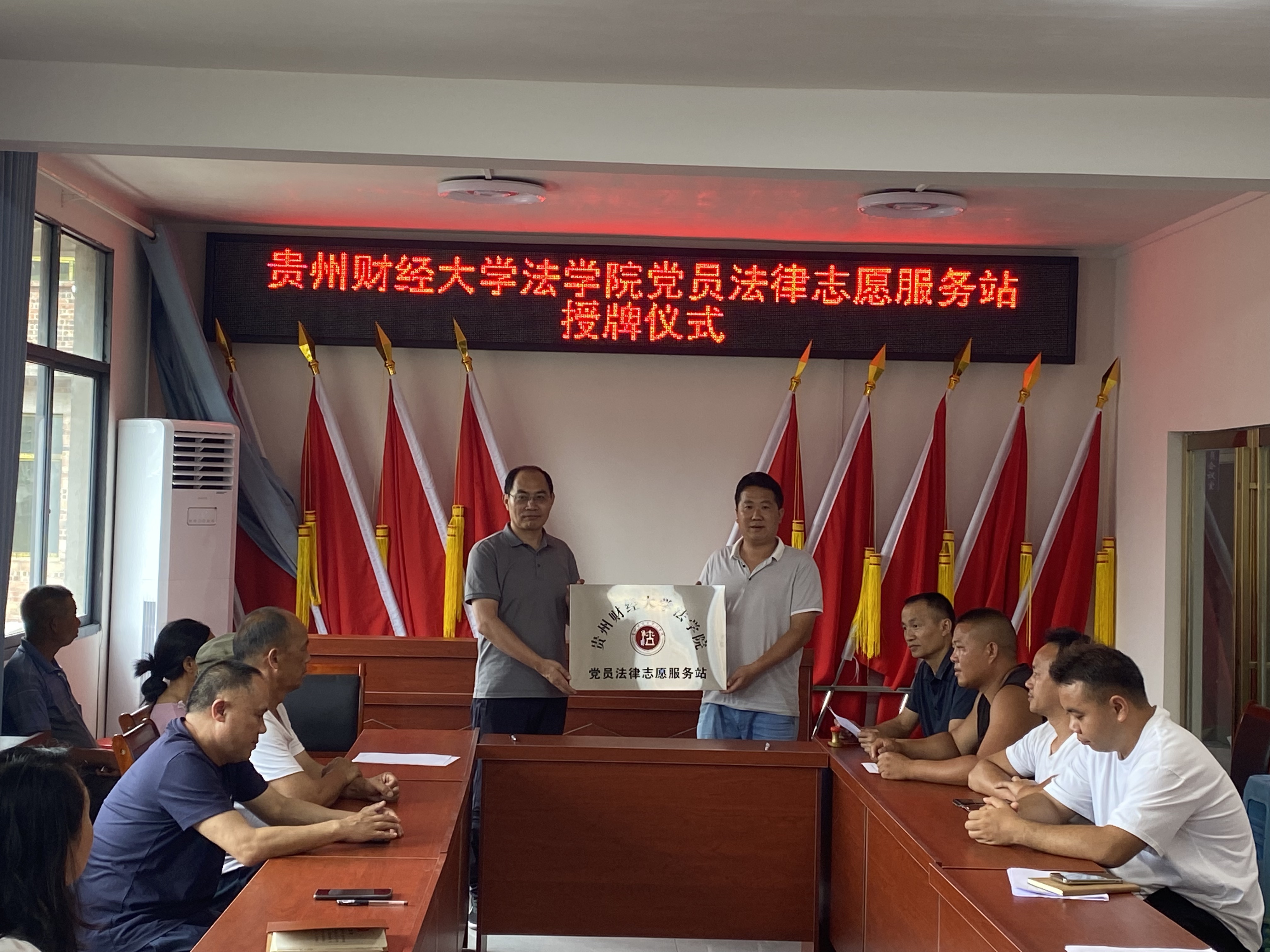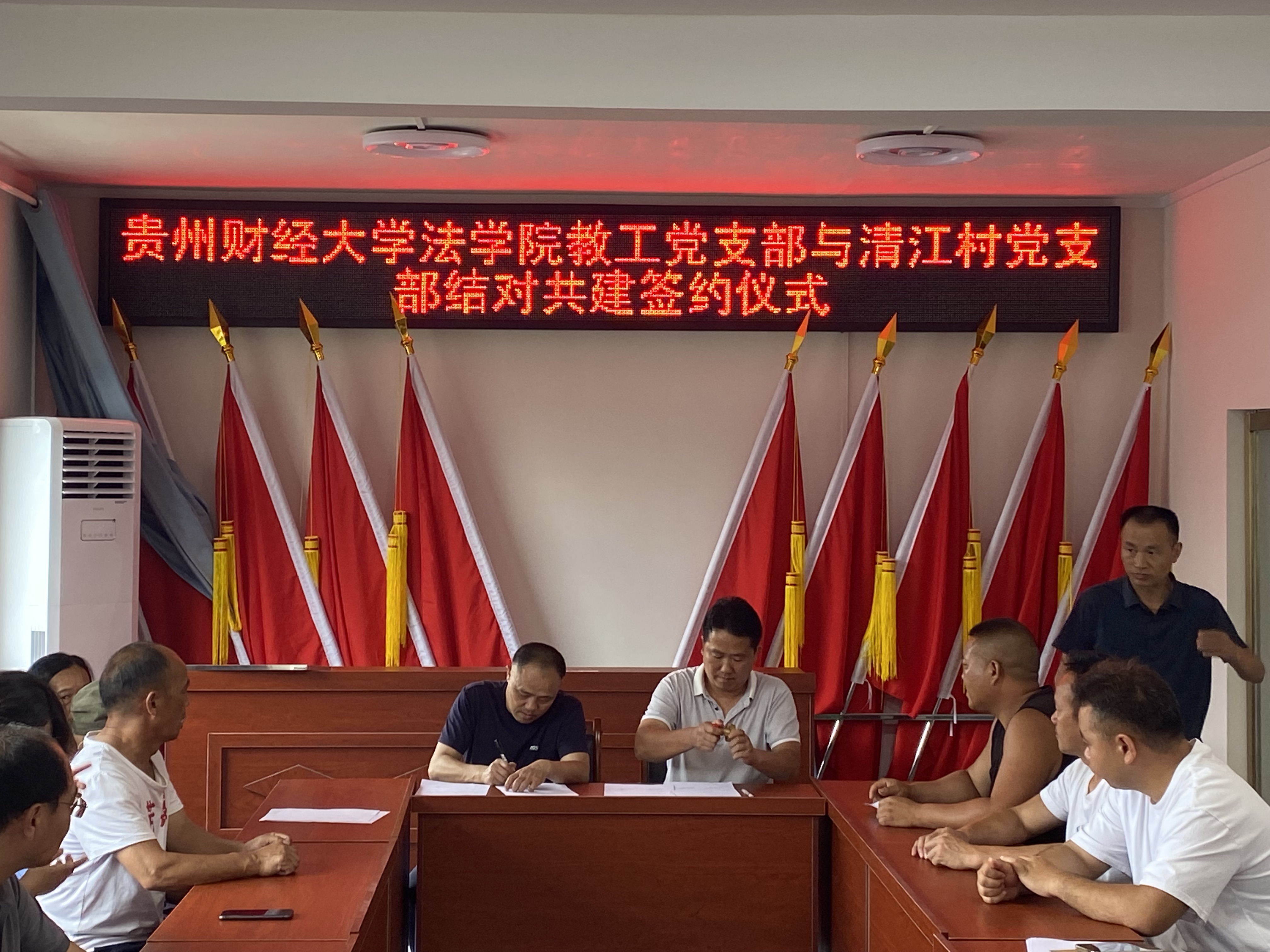 活动伊始,法学院党委与清江村村支两委、包括我院驻清江村第一书记李玉兰在内的驻村工作队开展座谈。清江村村支书陈世刚对法学院的到来表示欢迎,他介绍了清江村的村情民情等基本情况,希望法学院在民宿开发、苗族传统文化研学展销基地打造等方面给予支持。邵新顺表示将强化党建引领,与清江村党支部建立结对共建机制,发挥各自优势双向赋能,同时发挥法学院智力优势,为清江村的乡村振兴工作提供新思路、新方法。随后邵新顺与陈世刚共同为火狐电竞(中国)官方网站党员法律志愿服务站挂牌。曹务坤和陈世刚则围绕村民比较关心的婚姻家庭问题开展了题为《守护家庭权益 助力乡村振兴》的理论宣传二人讲,并现场回答了村民的相关困惑。曹务坤作为法学院教工第二党支部书记与陈世刚签署了党支部结对共建协议,两个支部将在支部建设、产业发展、法律援助与调解等方面开展合作。