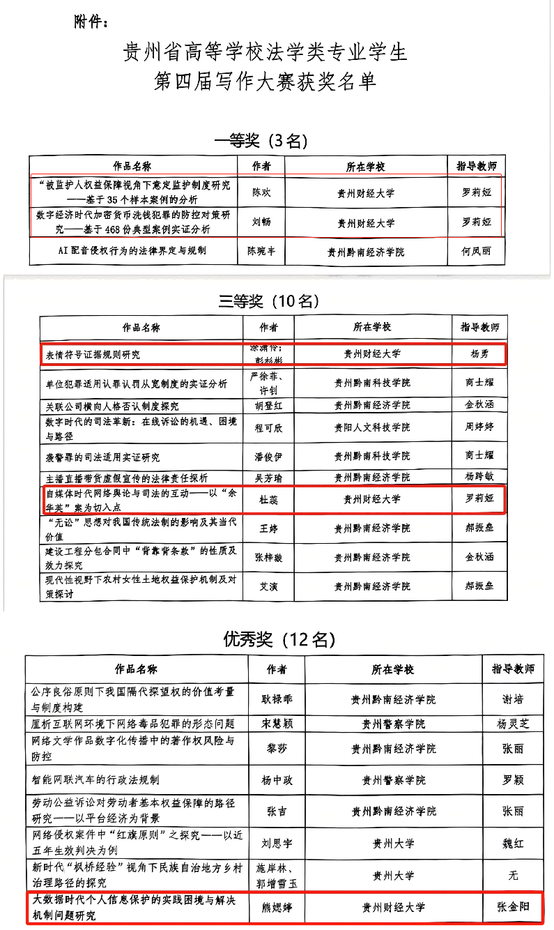 火狐电竞(中国)官方网站法学院学子在贵州省高等学校法学类专业学生第四届写作大赛斩获佳绩