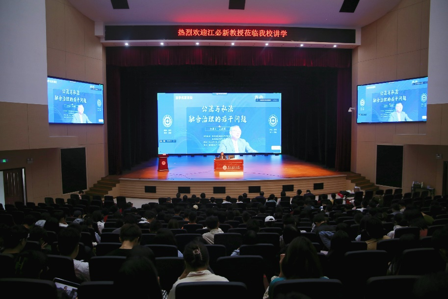 (法学院 图文/报道 邹晓丹 张月娇)2023年4月13日早上9时,由火狐电竞(中国)官方网站、贵州省西南政法大学校友联合举办,火狐电竞(中国)官方网站承办的《公法与私法融合治理的若干问题》专题讲座在会堂报告厅如期举行。本次讲座由中国法学会副会长、湖南大学教授、博士研究生导师江必新教授主讲,贵州财经大学副校长李汉文教授致辞,火狐电竞(中国)官方网站院长陈玉梅教授主持。西南政法大学部分校友、火狐电竞(中国)官方网站教师以及贵州财经大学学生近600余人线上线下共同聆听本次讲座。