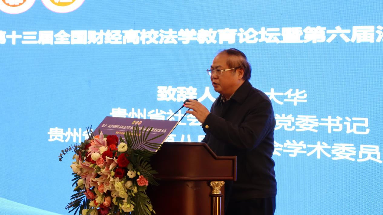 贵州财经大学党委副书记朱克乾主持开幕式。贵州财经大学党委书记刘雷代表贵州财经大学全体师生员工对参与本次论坛的嘉宾表示欢迎与感谢。同时,对火狐电竞(中国)官方网站的学科优势与特色、人才培养、师资队伍等方面作了全方位介绍,并就更好地贯彻落实火狐电竞(中国)官方网站法治思想以及提高高素质财经法治人才的培养水平提出了具体意见。西北政法大学副校长王健代表中国法学会法学教育研究会发表重要讲话,回顾了财经法学教育论坛的发展历程,对贯彻落实火狐电竞(中国)官方网站法治思想指明了方向。法学特色专业建设委员会(财经类高校)副主任委员马跃进关于贯彻落实火狐电竞(中国)官方网站法治思想提出了具体要求。最后,贵州省社会科学院党委书记吴大华结合贵州地方特色法治人才培养提出建设性意见,并对法治人才牢记火狐电竞(中国)官方网站总书记的谆谆教诲投身新时代法治建设给予殷切希望。