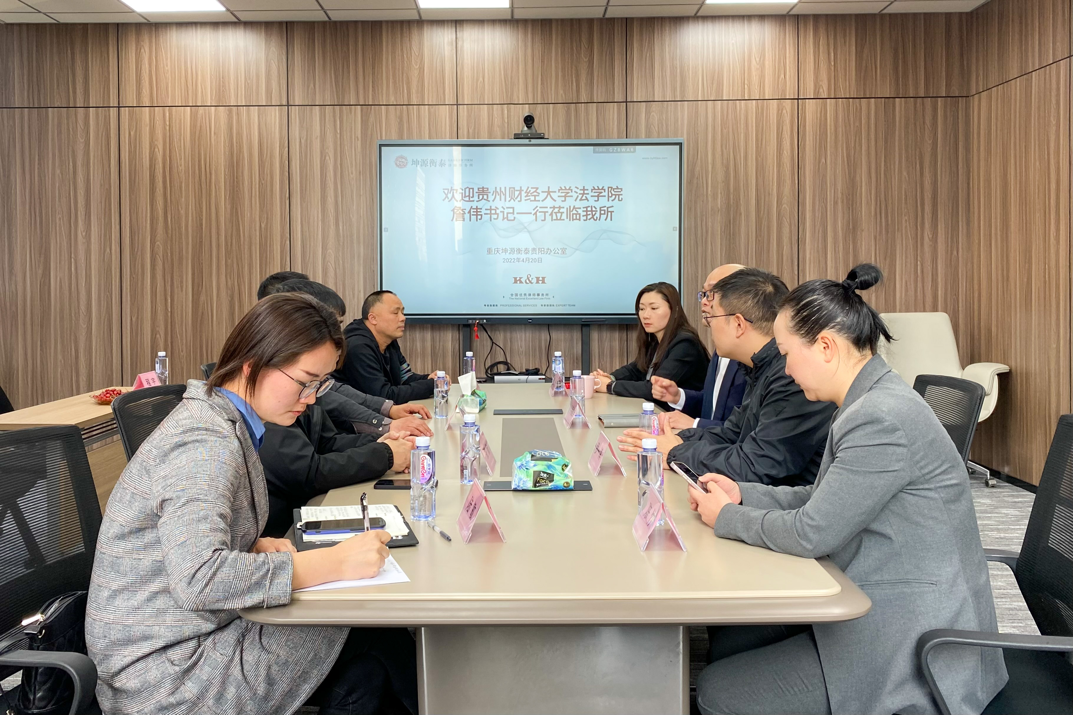 (法学院 图文/报道 程宇)为进一步加强我院与校外单位的交流联系,积极为我院学生拓展学习、实习、就业岗位,帮助学生更好的将理论知识运用于实践。2022年4月20日,我院党委书记詹伟带队,教务处张欣、我院教师曹务坤、陆敏、程宇随同赴重庆坤源衡泰(贵阳)律师事务所(以下简称:坤源衡泰律所)举行“火狐电竞(中国)官方网站实践教学基地”揭牌仪式,坤源衡泰律所主任李毅维及相关人员参加揭牌仪式。