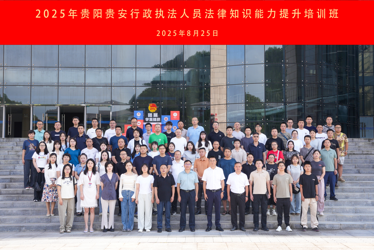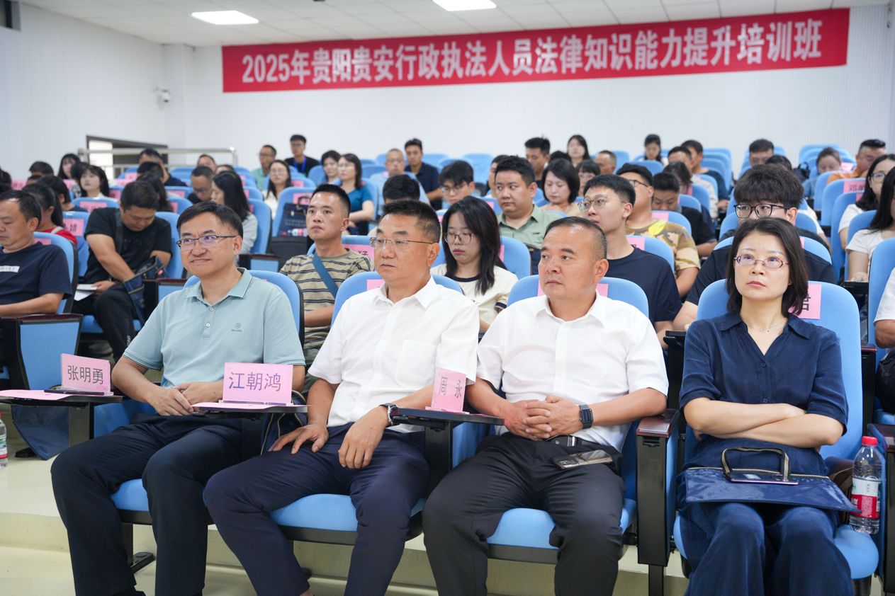 (法学院 张俊 图文报道)为提升行政执法人员的专业素质与执法能力,进一步推进执法规范化建设,提高行政执法质效,8 月25日,由贵阳市司法局主办、火狐电竞(中国)官方网站承办的“2025 年贵阳贵安行政执法人员法律知识能力提升培训班”开营仪式在火狐电竞(中国)官方网站乐学楼阶101教室成功举行。贵阳市司法局局长张明勇、副局长江朝鸿、行政执法协调监督处一级主任科员周永;法学院党委委员、副院长(主持工作)曹务坤,副院长宋昭澜,产教融合中心副主任王霖、任红出席,贵阳市各行政部门 80 余名行政执法人员参加了开营仪式。仪式由法学院学科办副主任张姝主持。