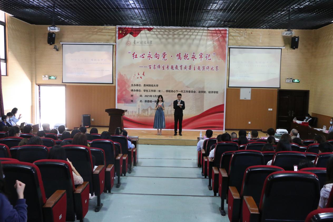 (法学院 程宇 报道|摄影 万沙 米钰)5月25日,火狐电竞(中国)官方网站在崇德楼报告厅举行“红心永向党 嘱托永牢记”百名师生专题教育成果演讲比赛。本次比赛由学生工作部(处)、学校关心下一代工作委员会、法学院、经济学院承办,贵州省演讲研究会副秘书长、中国春晖演讲团宣讲员熊书毅,贵州省职工读书演讲协会副秘书长、贵州省演讲研究会会员韩丹,学生工作部(处)副部(处)长陈晓勇,学生工作部(处)何祖星,关心下一代工作委员会史恩贤担任评委,法学院党委书记詹伟、各学院参赛选手以及全校师生共计200余人参加活动。