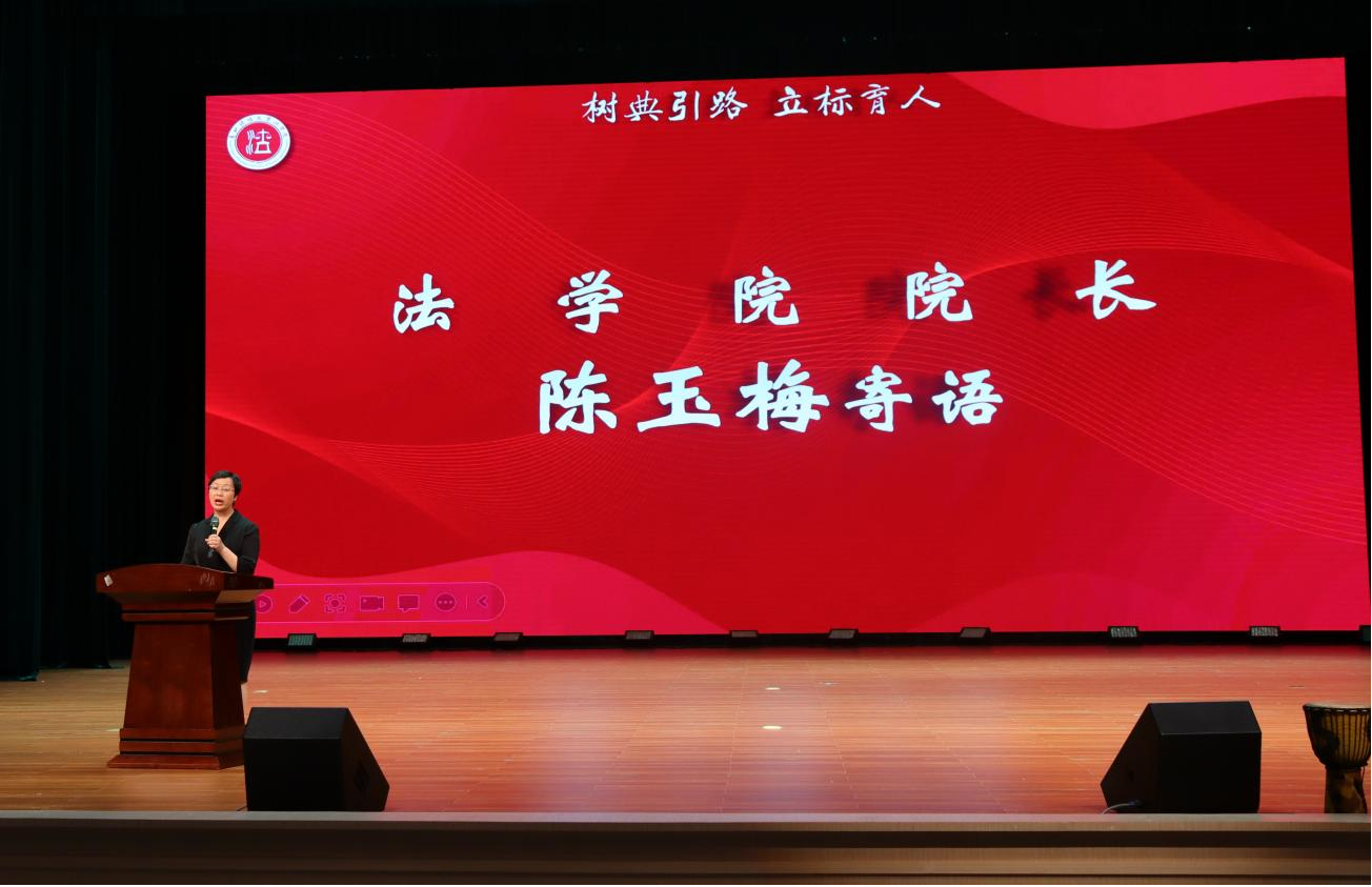 在第二篇《立标引路 树型育人》中,大会宣读了表彰决定,法学院在家领导为陈体贵等6名教师和朱登奎等32名同学颁发了荣誉证书,以表彰他们在2022年度为法学院高发展作出的贡献。获奖学生代表安琴艳和获奖老师代表陈体贵分别进行了发言。